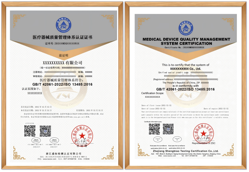 GB/T 42061-2022/ISO 13485:2016 醫療器械質(zhì)量管理體系認證證書(shū)樣本: