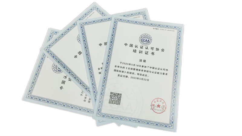 同時(shí),浙江盛標檢測認證有限公司有4名審核員參加了中國認證認可協(xié)會(huì )(CCAA)舉辦的《合規管理體系審核與認證能力要求國際標準》的培訓,并取得了中國認證認可協(xié)會(huì )培訓證書(shū)。此外,有5名審核員參加了民宿服務(wù)認證國際聯(lián)盟組織的《民宿服務(wù)認證審查員專(zhuān)業(yè)知識》的培訓,并取得了方圓標志認證集團培訓證書(shū)。為盛標開(kāi)展保安服務(wù)認證,合規管理體系認證、民宿服務(wù)認證奠定了扎實(shí)的基礎。